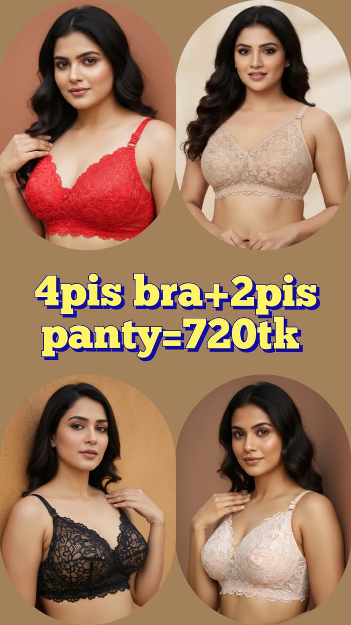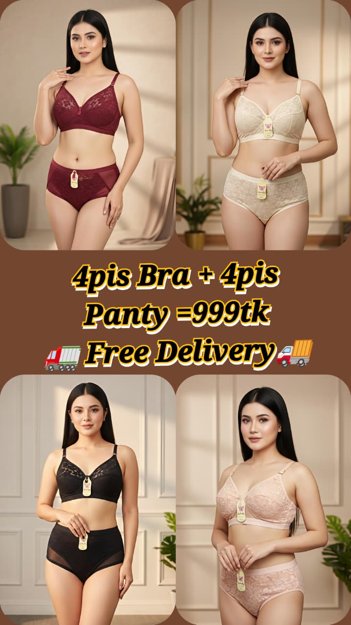 4Pis Ring-Safe Premium Lace Foam Bra Panty Combo Set free